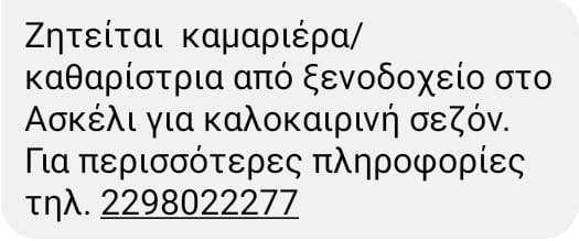 ΘΕΣΕΙΣ ΕΡΓΑΣΙΑΣ Ζητείται καμαριέρα / καθαρίστρια Date: 23/03/2024Author: Wake up News 2 0 Σχόλια Κοινοποιήστε: Μοιραστείτε στο X(Ανοίγει σε νέο παράθυρο) Χ Mοιραστείτε στο Facebook(Ανοίγει σε νέο παράθυρο) Facebook Μου αρέσει! Φόρτωση... Σχετικά