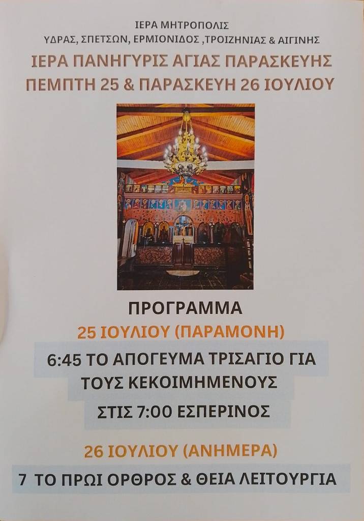 ΕΚΚΛΗΣΙΑ - ΑΝΑΚΟΙΝΩΣΕΙΣ Ιερά Πανήγυρις Αγίας Παρασκευής Πέμπτη 25 & Παρασκευή 26 Ιουλίου Date: 22/07/2024Author: Wake up News 2 Κοινοποιήστε: Μοιραστείτε στο X(Ανοίγει σε νέο παράθυρο) Χ Mοιραστείτε στο Facebook(Ανοίγει σε νέο παράθυρο) Facebook Μου αρέσει! Φόρτωση... Σχετικά
