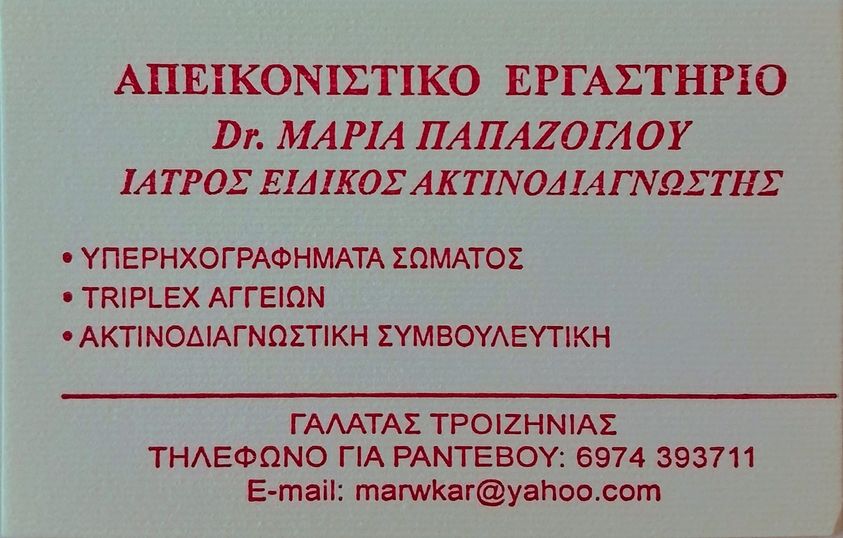 ΜΑΡΙΑ ΠΑΠΑΖΟΓΛΟΥ – ΑΠΕΙΚΟΝΙΣΤΙΚΟ ΕΡΓΑΣΤΗΡΙΟ – ΙΑΤΡΟΣ ΕΙΔ. ΑΚΤΙΝΟΔΙΑΓΝΩΣΤΗΣ