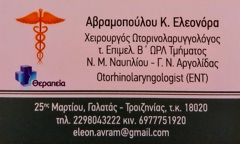 ΑΒΡΑΜΟΠΟΥΛΟΥ ΕΛΕΟΝΟΡΑ – ΧΕΙΡΟΥΡΓΟΣ ΩΤΟΡΙΝΟΛΑΡΥΓΓΟΛΟΓΟΣ