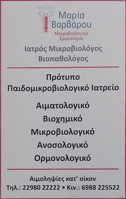 ΜΑΡΙΑ ΒΑΡΒΑΡΟΥ – ΙΑΤΡΟΣ ΜΙΚΡΟΒΙΟΛΟΓΟΣ / ΒΙΟΠΑΘΟΛΟΓΟΣ