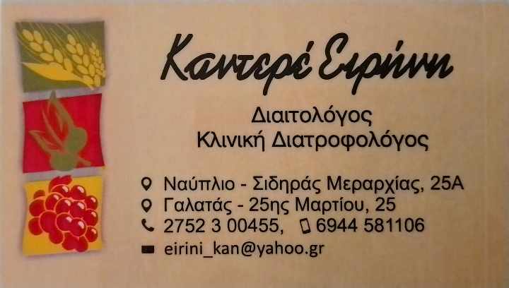 ΚΑΝΤΕΡΕ ΕΙΡΗΝΗ ΔΙΑΙΤΟΛΟΓΟΣ – ΚΛΙΝΙΚΗ ΔΙΑΤΡΟΦΟΛΟΓΟΣ