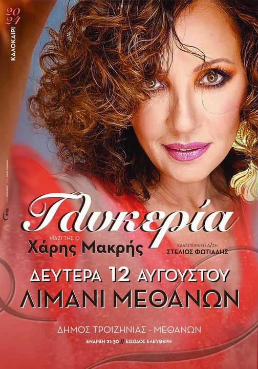 ΤΟΠΙΚΕΣ ΕΚΔΗΛΩΣΕΙΣ Συναυλία με την Γλυκερία Date: 11/08/2024Author: Wake up News 2 Δευτέρα 12 Αυγούστου στις 21:00 στο λιμάνι Μεθάνων. Διοργάνωση: Δήμος Τροιζηνίας-Μεθάνων Πάμε όλοι Μέθανα λοιπόν !!! Είσοδος Ελεύθερη ! Έναρξη: 9 :30 μ.μ. Τραγουδούν : Γλυκερία & Χάρης Μακρής !!! Κοινοποιήστε: Μοιραστείτε στο X(Ανοίγει σε νέο παράθυρο) Χ Mοιραστείτε στο Facebook(Ανοίγει σε νέο παράθυρο) Facebook Μου αρέσει! Φόρτωση... Σχετικά