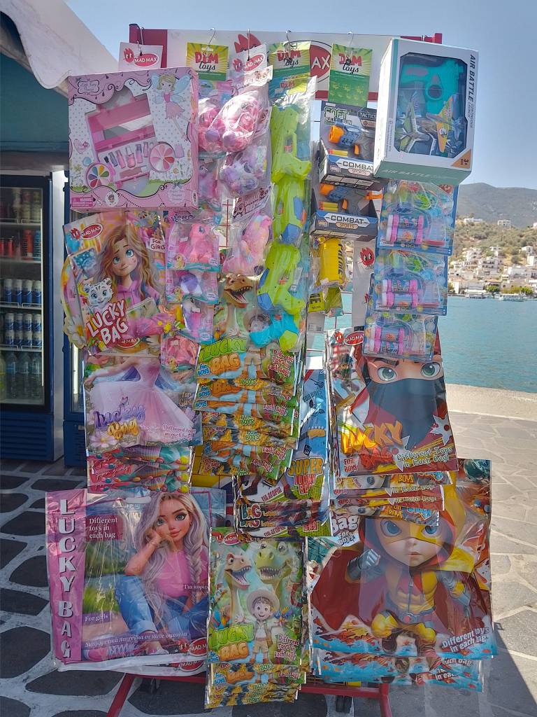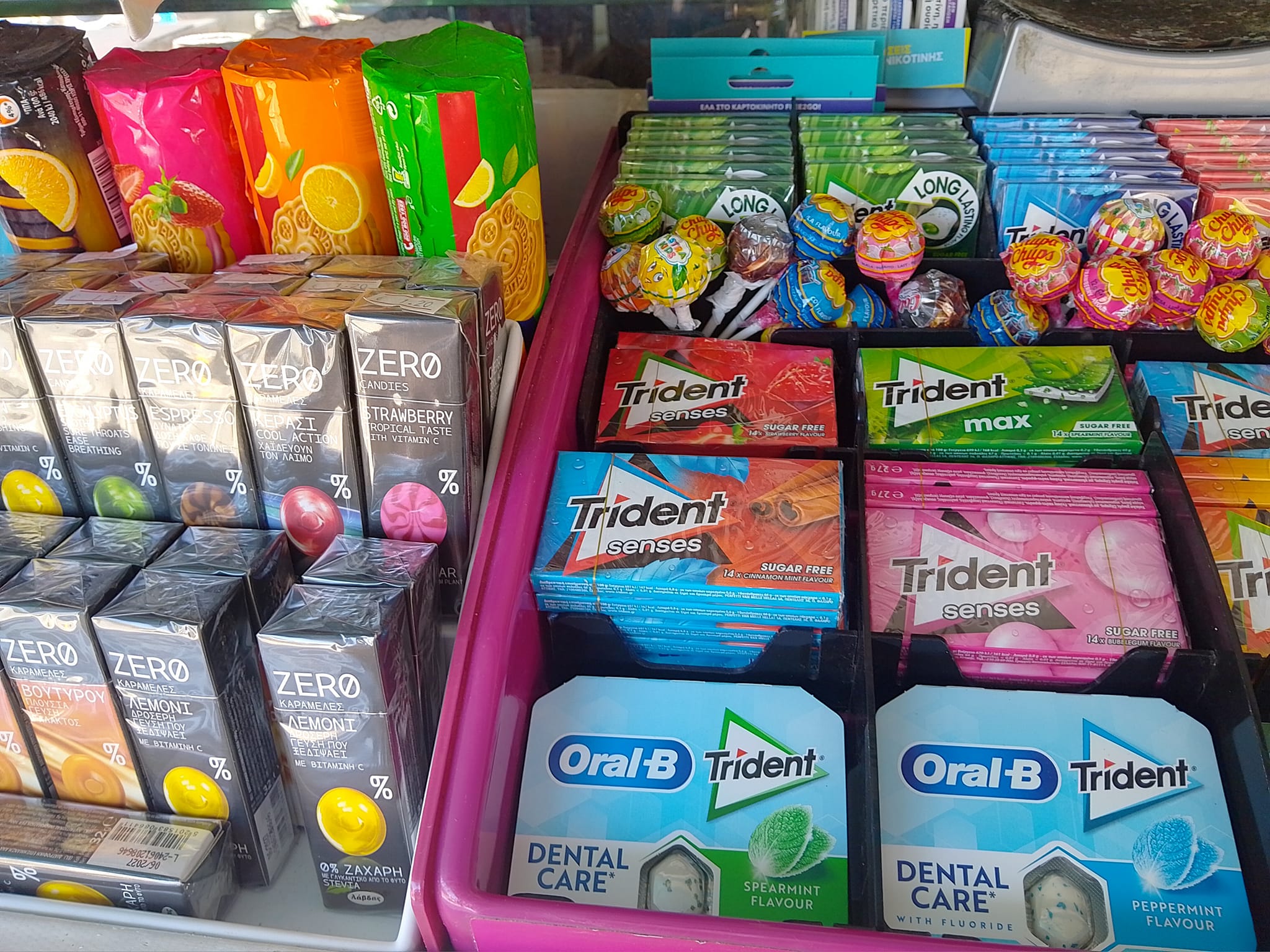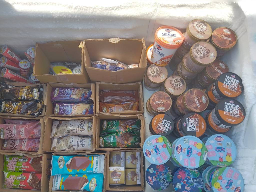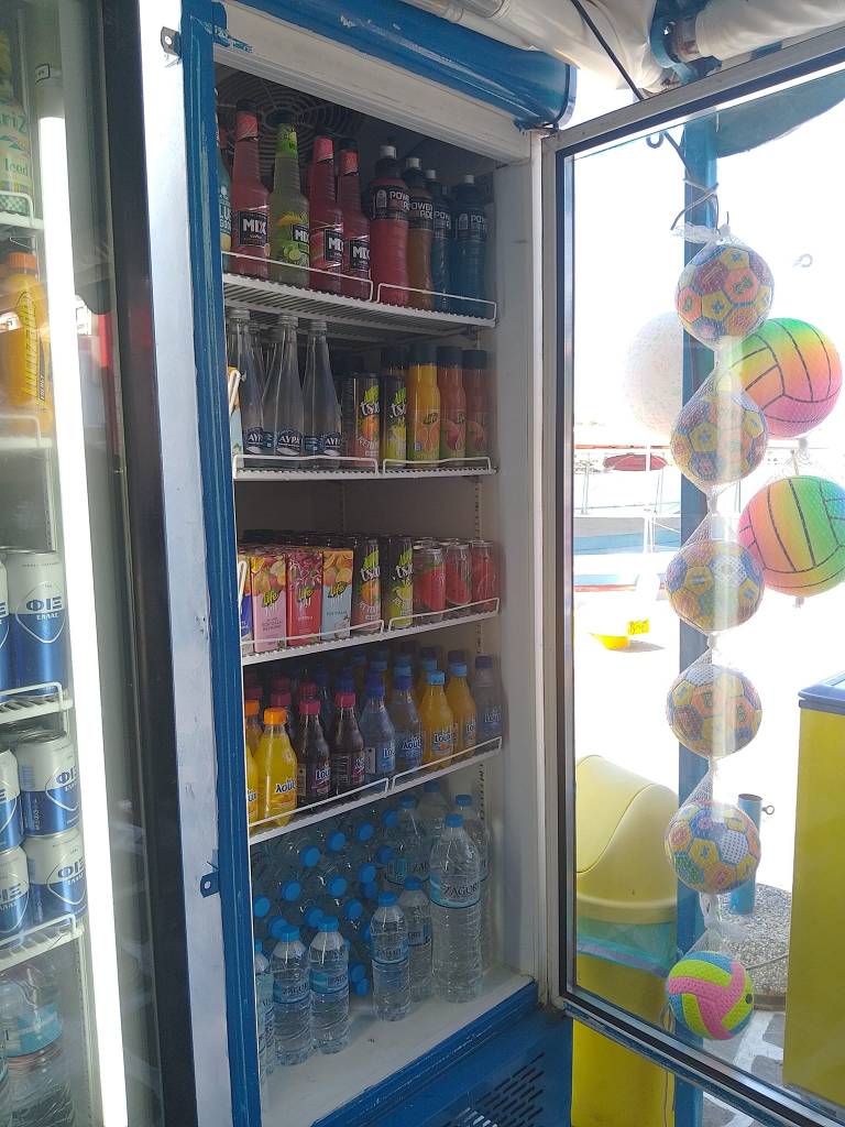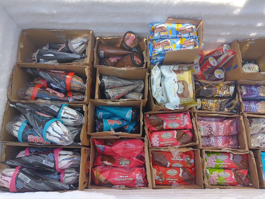 Μπισκότα, κρουασάν και σοκολάτες, τσίχλες, καραμέλες, ζελεδάκια, γαριδάκια, πατατάκια, εμφιαλωμένα νερά, αντισηπτικά μαντηλάκια!