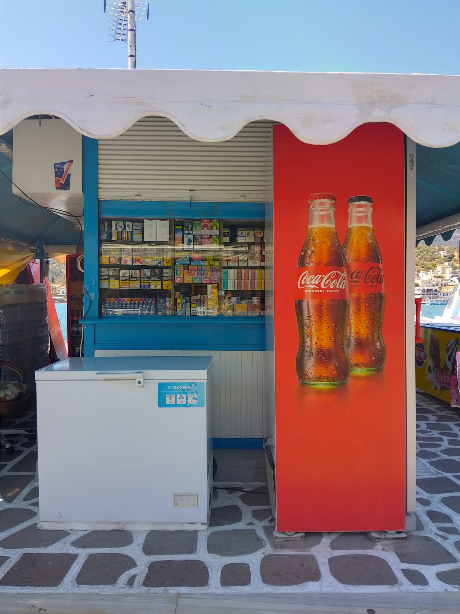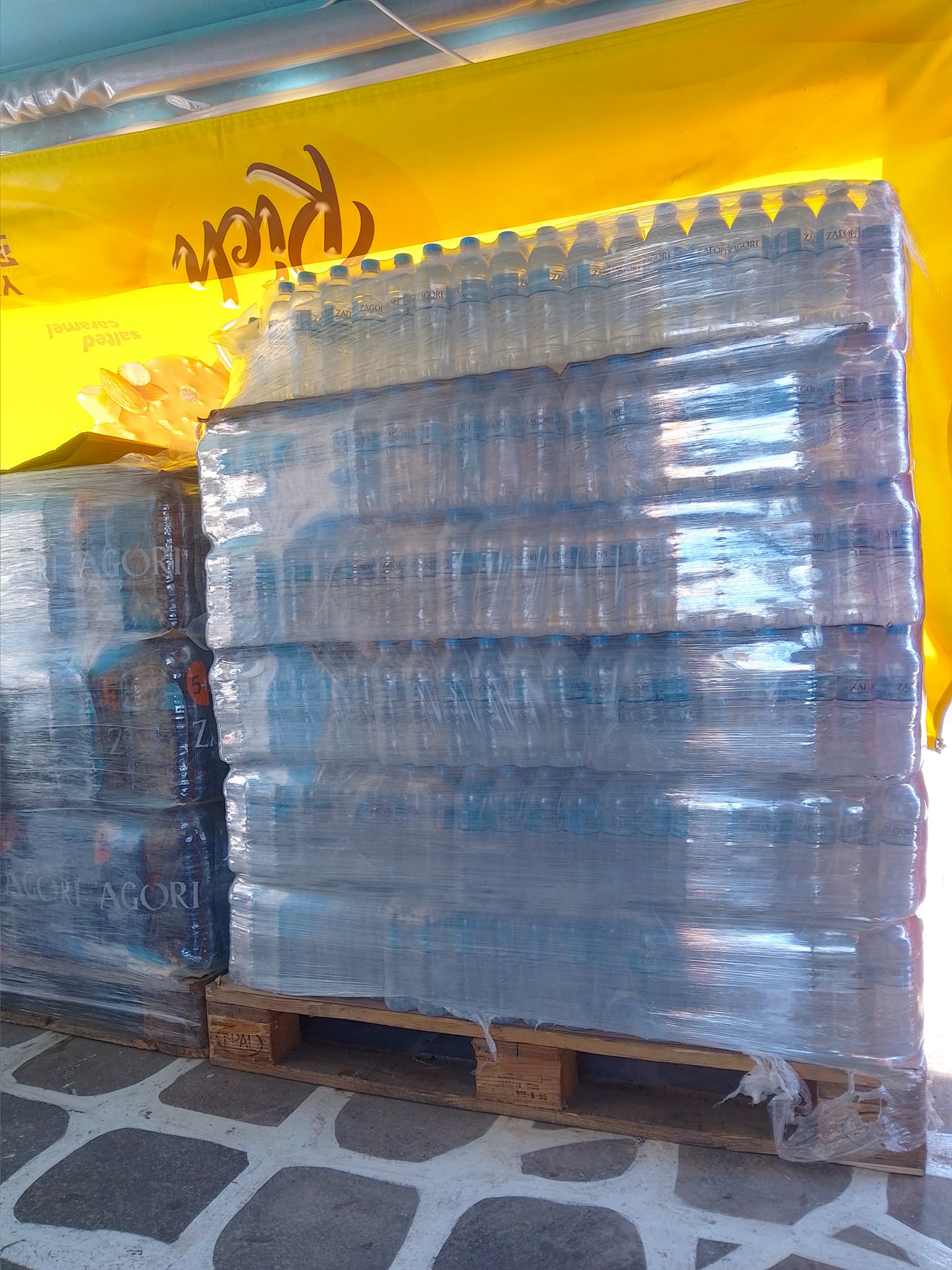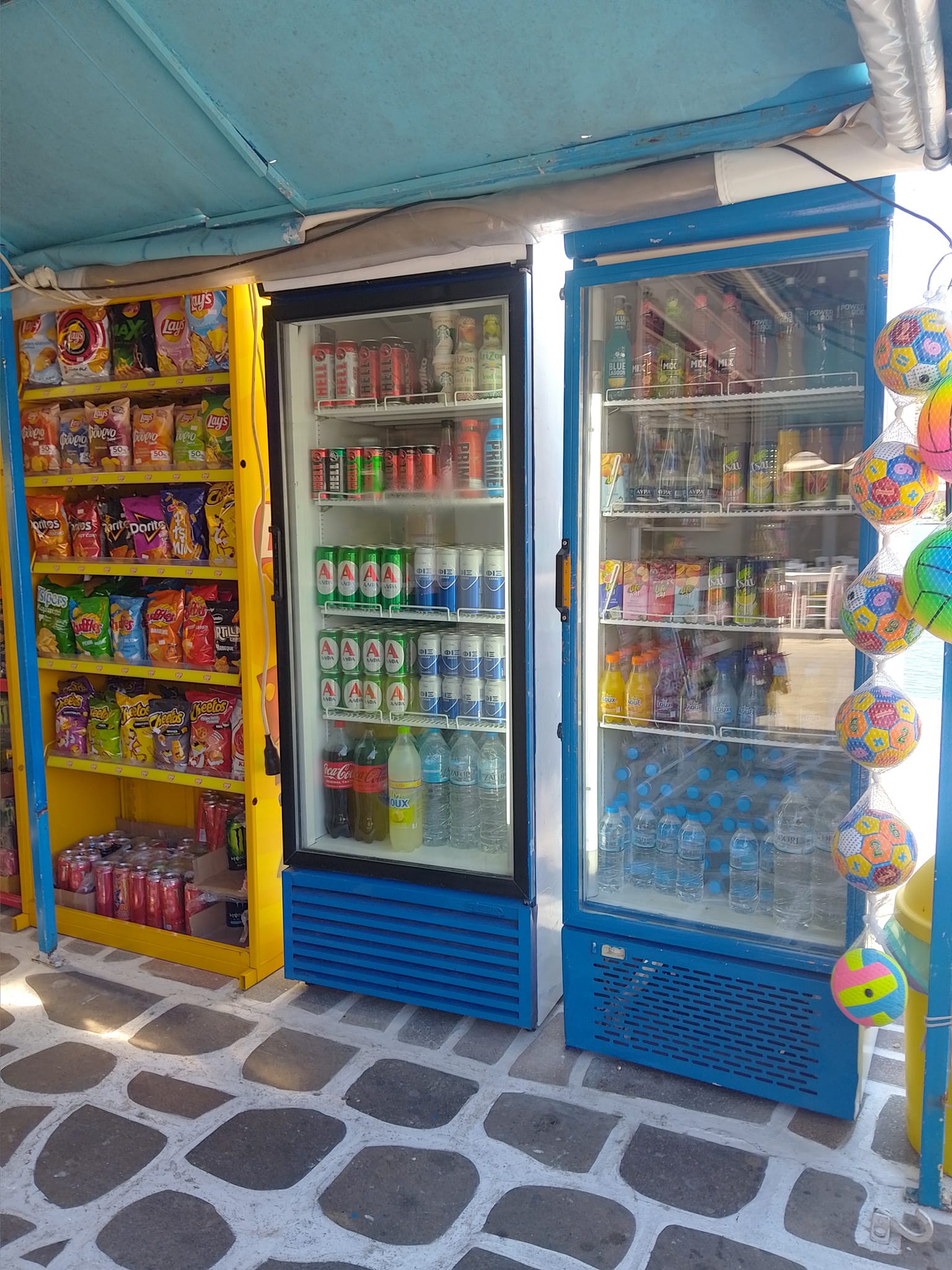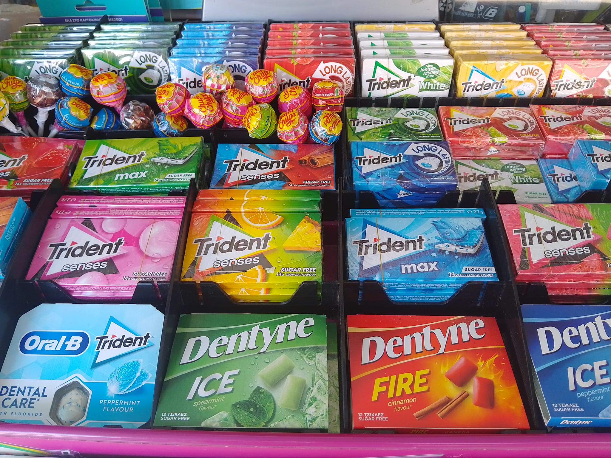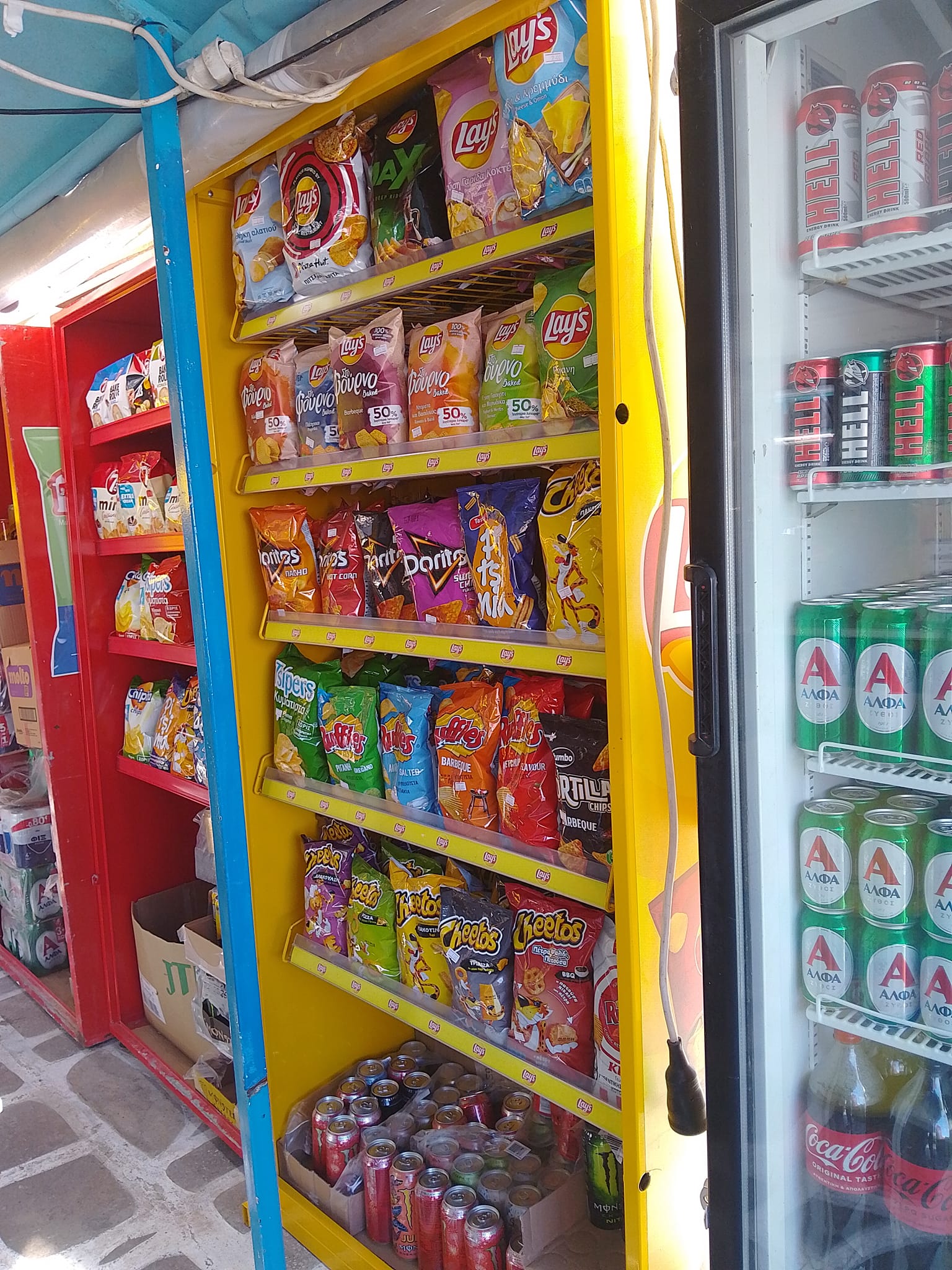Μπισκότα, κρουασάν και σοκολάτες, τσίχλες, καραμέλες, ζελεδάκια, γαριδάκια, πατατάκια, εμφιαλωμένα νερά, αντισηπτικά μαντηλάκια!